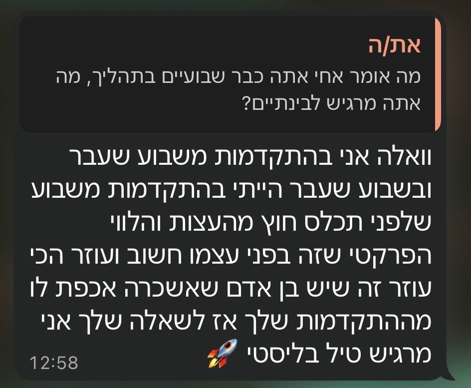 שיחות אישיות איתי, זמינות בווטסאפ לכל שאלה, בעיה, קושי או מטרה